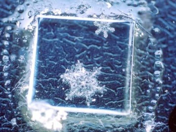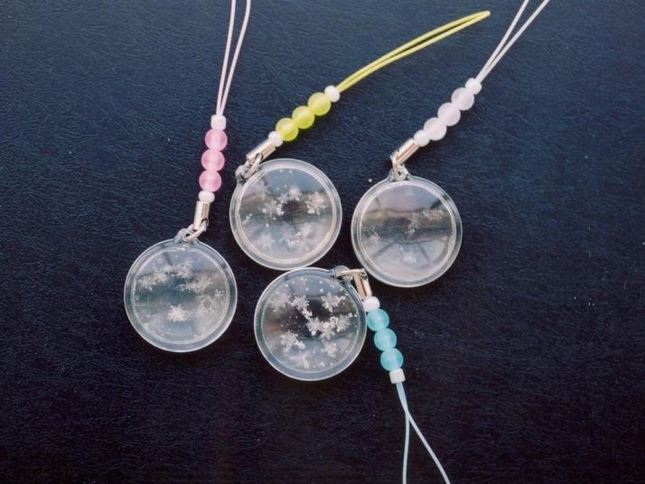 雪の結晶に光硬化性樹脂を滴下した後、カバーを被せて樹脂を硬化してから、水分を蒸発させると完成
