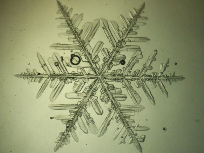 雪のレプリカは、暖かい部屋の中で結晶の構造をじっくりと見ることができる試料です。その姿は非常に精細で、眺めていて飽きることがありません。一方、そのような結晶が真冬の夜空から次々と降ってくる光景も、とても神秘的で印象深いものです。