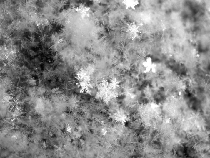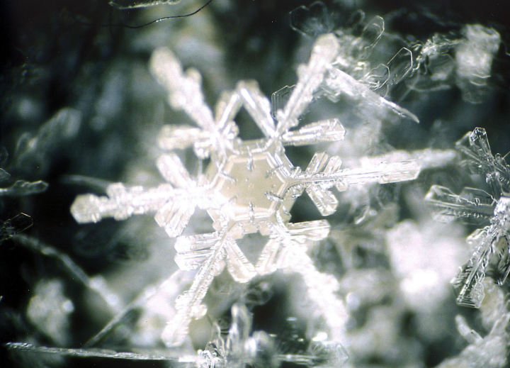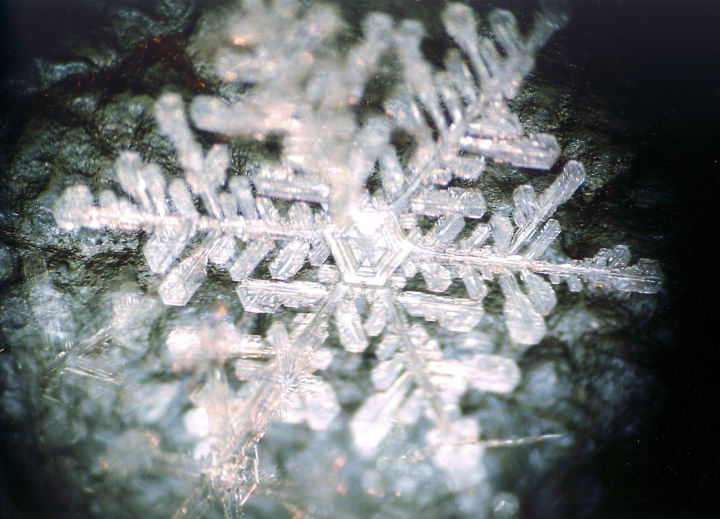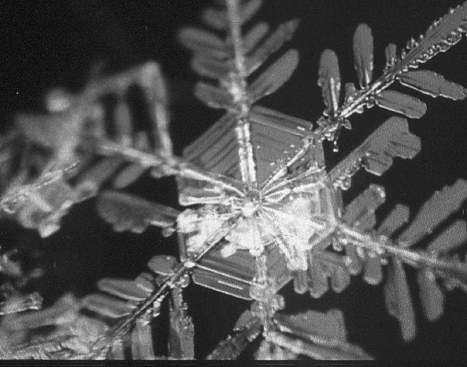 Since dendritic crystals can become entangled while falling, it is difficult to observe them as single crystals. Therefore, after catching the falling snow by holding out a reasonable board, we had to pick out single crystals from among them or pick up a single crystal by holding a brush in each hand and untangling the intertwined branches, being very careful not to break the crystals.