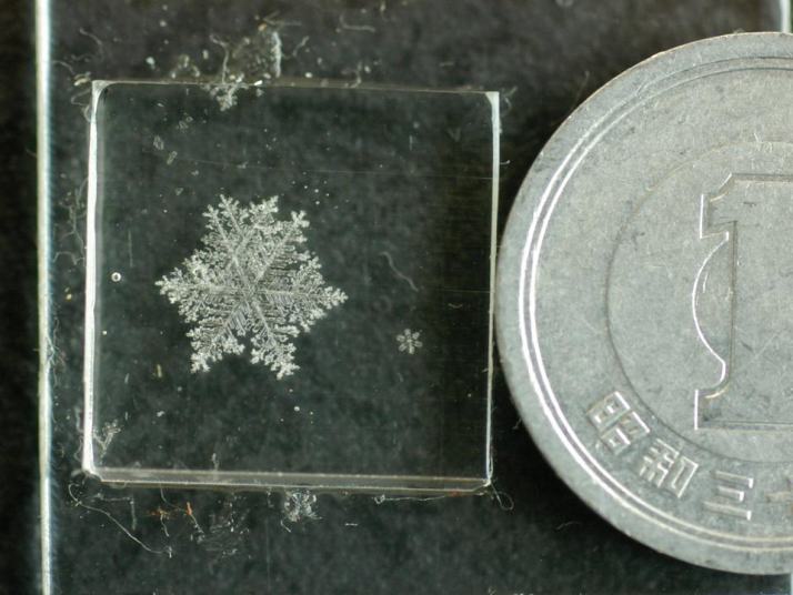 In any case, when snow crystals fall under the shining stars, I can observe beautifully grown crystals that are so large that I can see their detailed shapes with the naked eye.