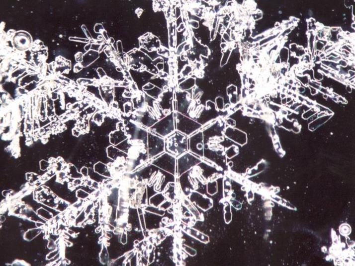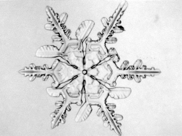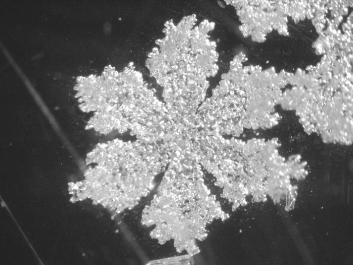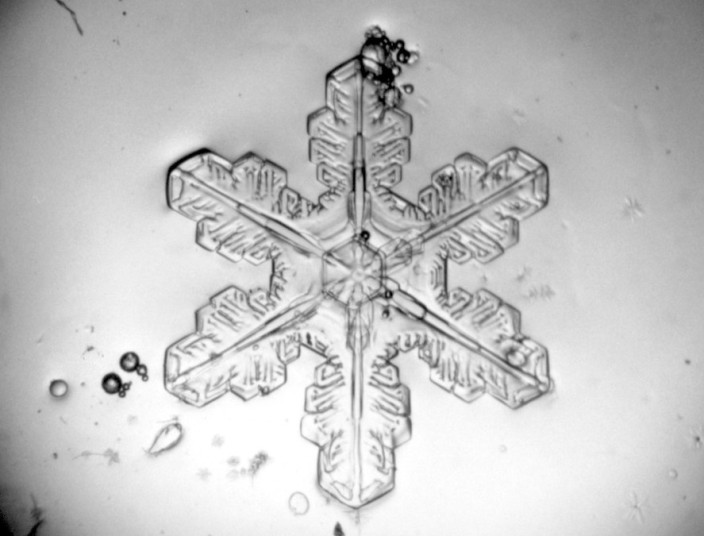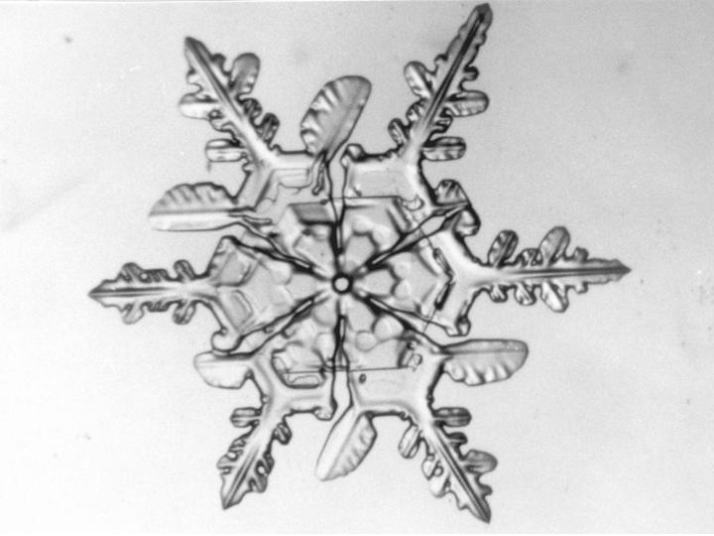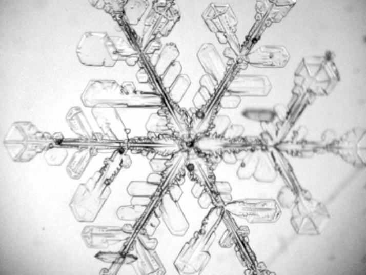 The 3D structures of snow crystals like this one are introduced in the gallery.