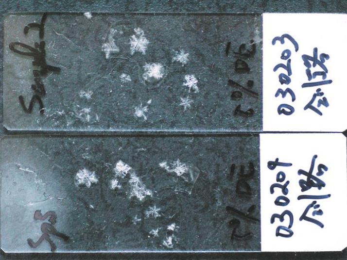 Replica liquids are easy to prepare, but some combinations of plastics and organic solvents can be used. Among them, the preparation method, in which acrylic is dissolved in methylene dichloride to make a 2-5% solution 2), seems to be the easiest because the materials are readily available. When attempting to make replicas more easily, transparent nail polish can be dripped over snow collected on a glass slide, or a spray of transparent oil-based paint can be sprayed onto a glass slide and the snow adheres to it. On this page, I would like to show you how to make a replica of snow crystals and various replicas.